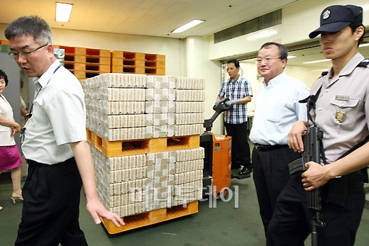 36년만에 첫 선을 보인 5만원 고액권이 23일 오전 한국은행 본관 지하 1층 현송장에서 삼엄한 경비 속에 시중은행으로 유통되고 있다. 이번에 발행되는 5만원권의 특징으로 △여성 도안 주인공 △세로 방향으로 디자인된 뒷면 △대형 홀로그램 등 첨단 위조방지장치 △시각장애인을 위한 식별 무늬 등이 있다고 밝혔다. 독자들의 PICK! "총각인 줄 알고 결혼" 빚더미 남편, 전처·자식 숨겼다...아내 충격 암 투병 아내 버리고 '딸 친구'와 재혼…유명 축구해설가 사생활 논란 임신 소식에 "딴 X이랑 잤냐" 폭언한 남편…알고 보니 무정자증 엄마 외도 목격한 12살 딸...피멍 들도록 맞아도 "이혼하지 마"