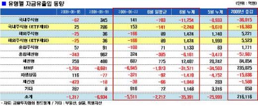 [펀드플로]22일 166억 순유출...국내주식펀드 5일 연속 순유입