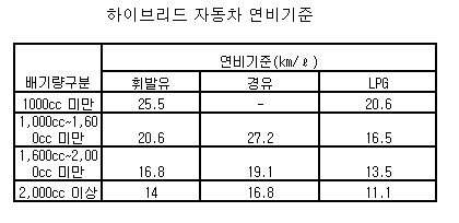 고시에 따르면 하이브리드 자동차는 △지난해 유종별 평균 에너지 소비효율 대비 50% 이상 에너지 소비 효율을 개선하고 △구동 축전지의 공칭(중심값) 전압이 직류 60볼트를 초과해야 한다.