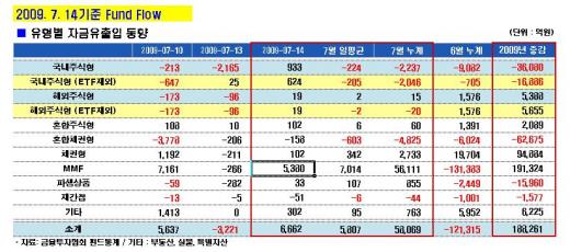 채권형펀드와 파생상품 펀드도 각각 103억원과 33억원의 자금 유입을 나타냈다.