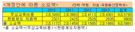 ◇입법 전망= 예산이 문제다. 예산정책처 분석자료에 따르면 고등학교 입학금과 수업료를 면제할 경우 매년 2조원 가량의 예산을 새로 투입해야 한다. 내년부터 2013년까지 4년동안 8조5900억원 가량을 마련해야 한다.