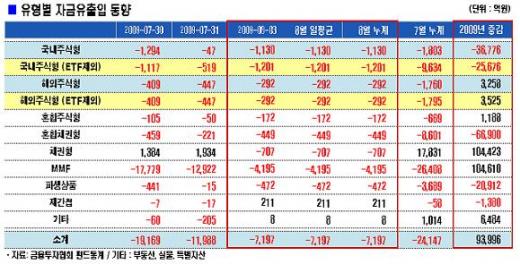 이날 머니마켓펀드(MMF)에선 4195억원이 이탈했다.
