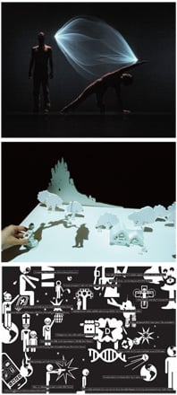 관객뿐 아니라 인터넷도 작품에 참여한다. 마이클 비엘리키와 카밀라 리히터의 '떨어지는 신문기사'는 스크린에 수많은 픽토그램이 폭포처럼 떨어지는 형상의 작품이다.