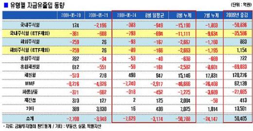 해외주식형펀드도 89억원이 빠져 하루만에 순유출로 돌아섰다.