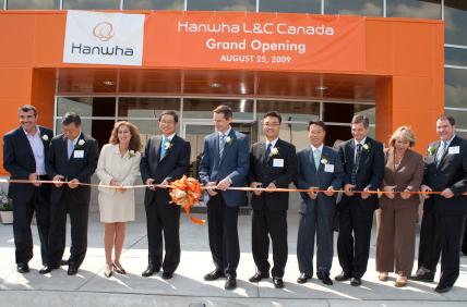 이와 관련해 25일(현지시간) 캐나다에서 진행된 공장 준공식에는 최웅진 대표이사와 유동우 캐나다 법인장 등 한화L&C 관계자를 비롯해 맥긴티 온타리오 주지사, 드시코 런던 시장, 쿠인터 국제무역부 보좌관, 홍지인 한국 총영사 등 한국과 캐나다 정부 고위 관계자 등 300여명이 참석했다.