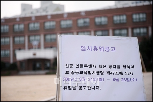 서울 목동의 한 중학교는 신종플루 감염자가 5명이 발생해 지난 4일부터 오는 8일까지 5일간 휴교를 결정했다. 인근 두 곳 학교도 각각 4명, 5명의 학생이 감염된 것으로 확인돼 임시 휴교에 들어갔다. 학생들의 집단 감염으로 같은 지역 학교들이 동시 휴교에 들어간 것은 이번이 처음이다.