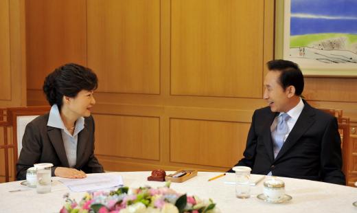 이명박 대통령과 박근혜 전 한나라당 대표가 16일 청와대에서 단독 회동을 갖고 남북관계, 4대강 사업, 세종시 문제 등 국정현안을 논의했다. 이 대통령 당선 이후 두 사람의 단독회동은 지난해 1월과 5월, 올해 1월에 이어 이번이 4번째다.
