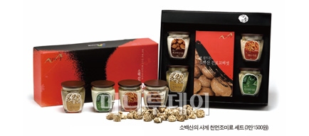 소백산에서 자란 유기농 버섯 등을 원료로 한 ‘소백산의 사계 세트’는 흔한 포도당도 없는 천연조미료다. 선물을 받는 대상이 주부라면 적극 고려해볼 만하다. 가격은 3만1500원.