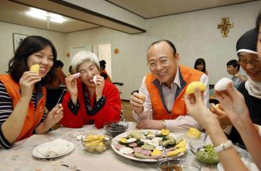 이날 한화사회봉사단 20여 명과 함께 방문한 김 회장은 장애우들에게 추석맞이 한복을 선물로 전달하고, 송편과 전 등 명절음식을 직접 만들면서 즐거운 시간을 보냈다.