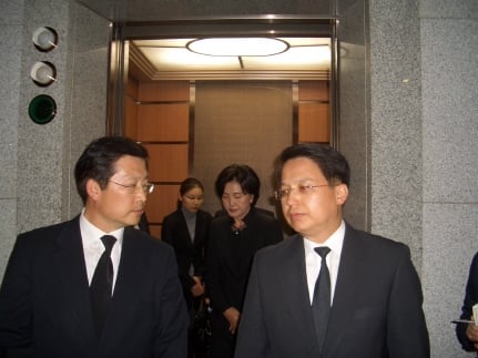 홍 회장은 15분 정도 빈소에 머문 뒤 장례식장을 빠져나갔다.