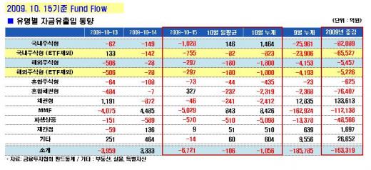 초단기금융상품인 머니마켓펀드(MMF)는 하루 5000억원 이상의 뭉칫돈이 빠져나가면서 설정액 80조원을 다시 하회했다.