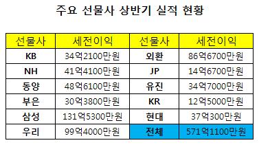 수수료 수익은 증가했다. 올해 상반기 이들 선물사의 수수료 수익은 938억4300만원으로 전년동기 791억6600만원보다 18% 증가했다.