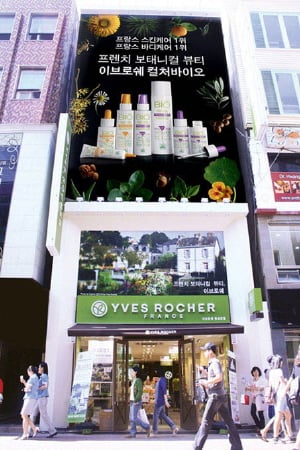 이미 포화 단계에 접어든 브랜드숍 시장의 후발 주자로 차별화를 위해 지역 핵심 상권에 주목한 전략이 적중했다는 것이 이 회사의 자체 평가다. 이브로쉐는 세계 80개국에 진출한 프랑스 유기농 화장품 브랜드다.