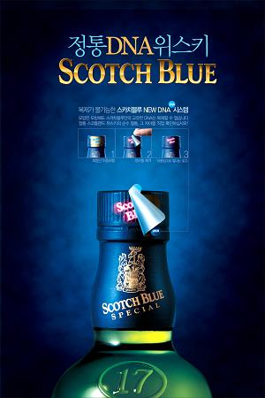 국산 양주 '스카치블루'가 위조품을 방지하는 새로운 시스템을 선보였다. 기존의 DNA 판별용액을 통한 확인 방법에 뚜껑 속라벨의 형광인쇄가 더해졌다.