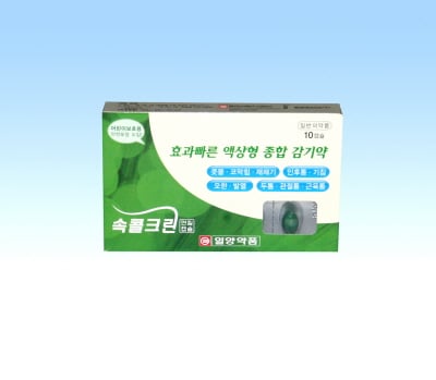 일양약품(12,140원 ▲740 +6.49%)에 따르면 속콜 크린 연질캡슐은 해열진통, 진해거담, 소염작용 등 이상적으로 처방된 효과 빠른 액상형 종합 감기약이다.