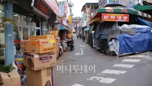 당초 황학동 벼룩시장은 삼일아파트를 따라 청계8가까지 이어졌다. 재개발이 결정 된 뒤로는 숭인동 벼룩시장 등지로 흩어지며 꼬리가 끊어졌다. 이 때문인지 주변 상권은 웅크린 모양새다. 그나마 골목으로 주방용품 등 식기자재용품과 곱창집이 예전의 명성을 잇고 있을 뿐이다.