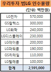 범 LG계열로 분류되는 LS계열사 회사채 인수물량(1200억원)을 합칠 경우, 우리투자증권 전체 인수 물량의 41%인 2조5950억원에 달한다.