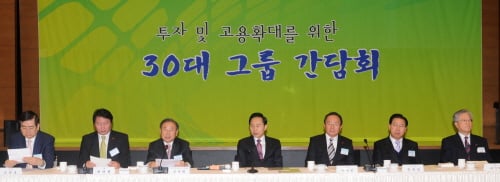 전국경제인연합회는 15일 이명박 대통령을 대한상의 대회의실로 초청해 ‘투자 및 고용 확대를 위한 30대 그룹 간담회’를 열고, 30대그룹의 투자 및 고용 실적과 계획을 점검했다고 밝혔다.