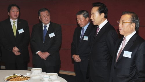 전국경제인연합회가 주관해 이명박 대통령과 30대 그룹 총수들이 참석한 가운데 15일 오전 7시 30분 대한상의 국제회의실에서 긴급 투자 및 고용과 관련한 간담회가 열렸다.