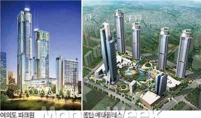 ◆디큐브시티= 2011년 5월 완공 예정인 대성디큐브시티는 51층 규모의 주거동 2개와 업무ㆍ판매ㆍ문화 시설을 갖춘 42층짜리 1개 동으로 구성된다. 연면적은 32만9463㎡로 테크노마트보다 크다. 내부에 특급 호텔과 컨벤션센터도 들어선다.