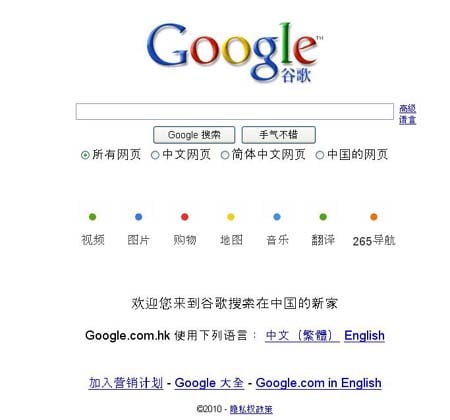 구글은 22일(현지시간) 오전부터 인터넷 사용자들이 구글 차이나에 접속할 경우 구글 홍콩으로 사이트가 전환되도록 하는 조치를 취했다. 검색창에 'google.cn'을 입력하더라도 'goolge.com.hk'로 바뀌면서 곧바로 홍콩 사이트로 넘어간다.