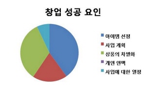 창업 성공 요인에는 ‘창업 아이템 선정’이 37.4%(48명), ‘상품의 차별화’는 31.3%(40명)으로 대답해 아이템에 따라 창업의 성패가 결정될 수 있는 것으로 나타났다.