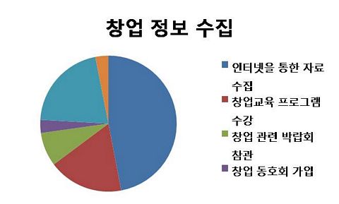 또한 인터넷을 통한 자료 수집’이 47%(60명), ‘주변 창업 사례 활용’이 21%(27명), ‘창업교육 프로그램 수강’이 17.8%(23명)으로 창업 정보를 수집하는 경로가 다양한 것으로 조사됐다.