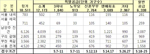 7~11일 3자녀·노부모 특별공급을 시작으로 12~13일에는 신혼부부, 14·17일에는 생애최초 특별공급이 진행된다. 사전 예약 물량의 34.2%가 배정된 일반공급은 다음달 18일부터 25일까지 접수를 받는다.