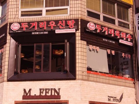 서울 삼성역 4번출구 전방에 위치한 ‘두거리 우신탕’탕전문 매장으로 하루에 2차례 직접 육수를 우려내 산초목, 녹각 등 10가지 한방재료와 함께 소고기를 우려내고 있다.