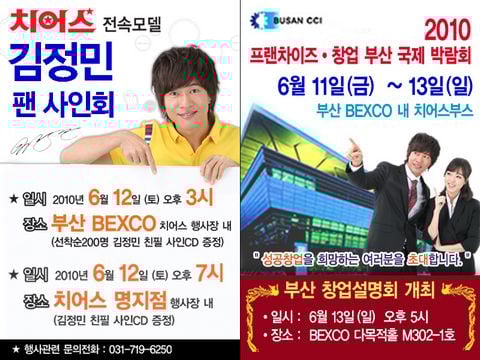 한편 치어스는 오는 11일(금)부터 13일(일)까지 부산 BEXCO에서 열리는 ‘2010 프랜차이즈·창업 부산 국제 박람회’에 참가한다.