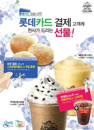 음료 구매 시 롯데카드로 결제한 고객 모두에게 스트로베리필드 1개를 무료 증정하며, 엔제린스노우 구매 고객에게는 아메리카노를 1,000원에 할인 판매한다.