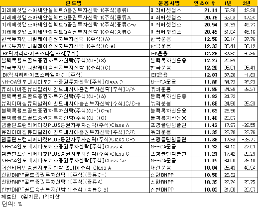 올 들어 10~20% 수익 거둬 상위권 랭크