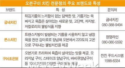 2000년대 중반 새롭게 등장한 오븐구이 치킨 전문점은 맛과 건강을 동시에 잡았다. 게다가 가게 운영 시 식용유를 사용하지 않아 비용을 절감하는 동시에 매장을 청결하게 유지할 수 있다는 강점이 있다.