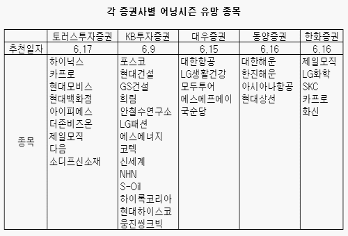 증권사들은 각각의 기준으로 이번 어닝시즌에 주목할 종목들을 선정해 발표하고 있다. 공통적인 기준은 이익 모멘텀이 뛰어나면서 밸류에이션 매력이 있는 종목들이다. 한마디로 실적이 크게 증가할 것으로 보이지만 아직 주가에는 반영되지 않은 종목들이다.