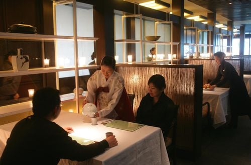 한복을 곱게 차려 입은 홀 직원의 서비스 또한 이곳을 방문하는 중국인들에게 크게 어필하는 부분이다. 우리 그릇과 술, 음식, 공간을 한번에 아우르고 있는 <가온>을 통해 (주)광주요가 한식세계화에 앞서 지향하고 있는 한식의 명품화와 한스타일의 추구가 이뤄지고 있다.
