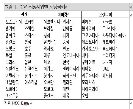 심 팀장은 "합의점을 찾지 못한 상황에서 국내증시 관련 시세를 헐값에 사용토록 허락할 만큼의 득이 없다"며 "MSCI지수 편입국들과 경제성장률이나 지수수익률 등을 비교했을 때 수급차원에서도 이머징시장에 남아있는 게 더 효과적"이라고 주장했다.