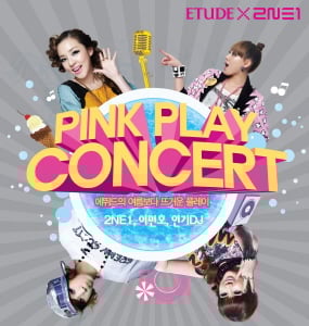 에뛰드의 즐거운 화장놀이문화 캠페인의 일환으로 진행되는 이번 콘서트는 에뛰드 모델인 2NE1과 이민호가 출연할 예정이며 워커힐 호텔 리버파크에서 진행된다.
