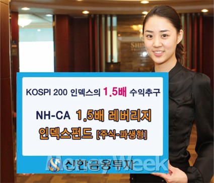 신한금융투자는 올 하반기 추천 상품으로 ‘NH-CA 1.5배 레버리지 인덱스펀드[주식-파생형]’을 꼽았다. 최근 코스피지수가 1700포인트를 회복하면서 추가 상승 기대감이 높아지고 있다. 장기적인 관점에서 증시 상승을 예상하고 있는 투자자들은 일반 주식형펀드나 인덱스펀드에 별다른 매력을 느낄 수 없는 상황이다. 이런 투자자들에게 수익률 면에서 'NH-CA 1.5배 레버리지인덱스 펀드'가 유망한 상품이라는 게 신한금융투자 측의 설명이다.