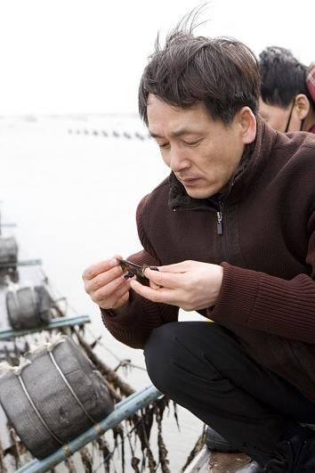 김은 한번 씨를 뿌리면 11월에서 4월까지 6개월 동안 4~6회 정도 수확할 수 있는데 보통 1~2월에 수확되거나 2~3번째 수확되는 김이 가장 맛있단다. "좋은 원초가 자라는 장소는 뻘이 형성돼있고 민물과 바닷물이 만나는 곳입니다. 비가 적당히 내리면 김의 영양공급에 도움이 되고, 또 바람이 적당히 불면 조류의 흐름이 원활하기 때문에 강하고 건강해져요."