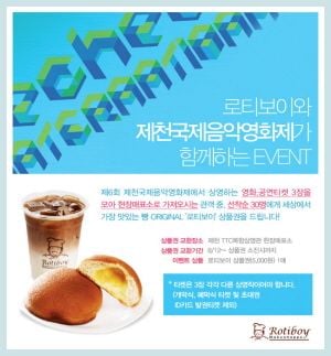 한편, 제천국제음악영화제 현장에서는 영화나 공연티켓 3매를 모아 현장매표소에 가져오면 로티보이 상품권을 제공하는 이벤트도 함께 진행한다.