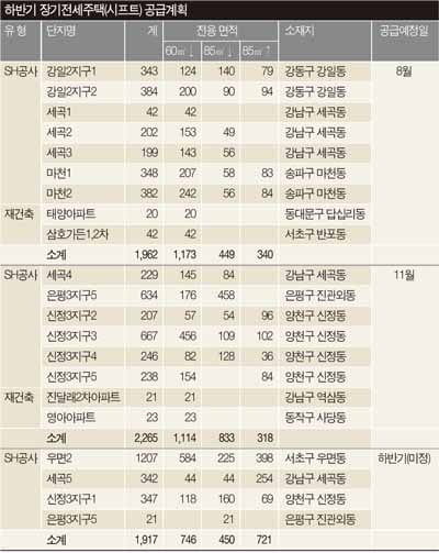 올 하반기에는 장기전세주택(시프트)과 5·10년 공공임대아파트 공급 물량도 풍부하다. 자격요건을 꼼꼼히 따져 비교적 적은 돈에 안정적으로 내집을 마련해 볼 만하다.