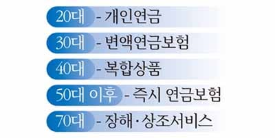 40대는 서서히 은퇴를 준비할 나이다. 은퇴 이후 생활비와 함께 건강까지 보장해주는 복합적인 상품이 적합하다. 활동기에는 질병을 집중적으로 보장받고 은퇴 이후에는 연금으로 전환해 생활비를 받을 수 있는 상품이 여러모로 알짜다.