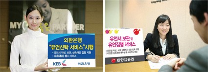 동양종합금융증권의 '유언서 보관 및 유언집행' 서비스도 고객의 사후를 대비해 유언서를 보관해 줄 뿐만 아니라 고객 사망 시 유언서 내용대로 유언을 집행해 상속재산의 이전, 명의변경, 배분 등을 대행해준다. 민경배 동양종합금융증권 신탁팀장은 "거래 금융회사를 통한 유언서비스는 이용이 편리하고 상속관련 재무설계 서비스도 받을 수 있어 일반적인 법무법인의 유언서 공증보다 한 단계 앞선 서비스로 볼 수 있다"고 말했다.