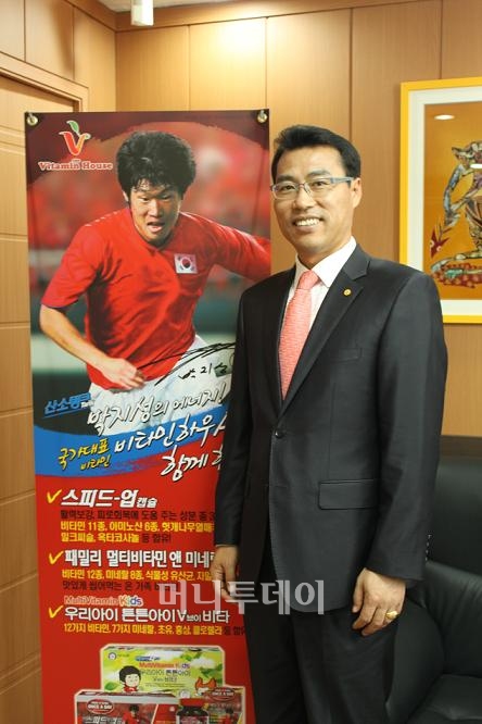 '산소탱크 비타민', 일명 '박지성 비타민'으로 건강기능식품업계의 주목을 받고 있는 김상국 비타민하우스 대표. 군살 하나 없이 다부진 체구에 여간해선 감기 한 번 걸리지 않는다. 비타민 때문이냐는 질문에, 의외로 완도에서 나고 자란 '촌사람'이라 그렇단다.