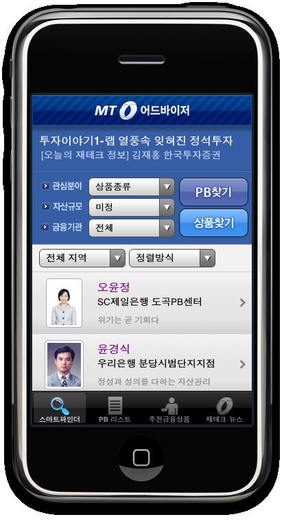 MTA앱을 통해 독자 여러분은 자신의 수요에 가장 적합한 상품을 고르고, 현재 자신의 위치에서 가장 가깝거나 가장 선호하는 금융기관의 최고 자산관리 전문가와 직접 대화할 수 있습니다.