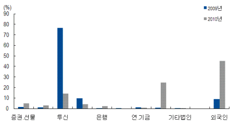 실제로 펀드와 연기금 과세 후 올해 주식시장의 차익거래 규모는 전년도 같은 기간보다 44%가량 급감했고, 반면 외국인의 시장점유율은 지난해 9.0%에서 올 30일 현재 45.3%로 껑충 뛰었다.