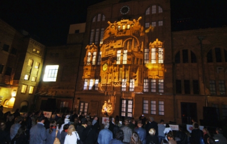 LG전자는 3일(현지시간) 독일 베를린 '쿨투어브라우어라이 광장'에서 건물 벽면에 입체영상을 구현하는 '미디어 파사드' 방식의 'G 옵티머스 3D 미디어 파사드쇼'를 진행했다.