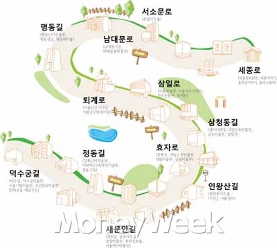 정동길(이화여고100주년기념관, 정동극장) - 덕수궁 - 서울광장 - 명동길(화폐금융박물관) - 서울남산한옥마을(서울남산국악당, 서울천년타임캡슐)