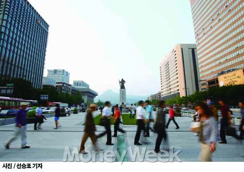 대형 빌딩의 ‘세련된 바람’은 최근 들어 더욱 거세다. 변화의 흐름을 주도하고 있는 곳은 광화문 일대 청진지구와 중학지구, 세종로·도렴지구다. 이들 지역에 25층 이내 100m 내외의 높이로 고층빌딩 7~8개가 모습을 드러내거나 준비 중이다.
