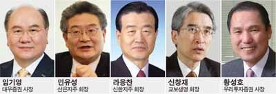라응찬 신한지주 회장에 대해서는 “산전수전 다 겪어서 타이밍에 강한 듯”(박현식 삼성생명 FA), “일본자금과 연계돼 있어 치밀한 관리를 할 것 같다”(오태훈 HMC투자증권 강남센터 차장)는 평가가 나왔다.